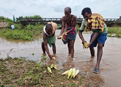 मानसून विदाई के बावजूद पिछले 4 दिनों से हो रहे मूसलाधार बारिश ने किसानों के फसल चौपट कर दिया है. बारही नदी के तट पर अमाड़ ग्राम के कृषक मोहन बीसी, शत्रुघ्न नागेश, तुलसी नागेश, गणेश पौंड, पुस्तम, लक्ष्मण, नरेश, विनोद समेत 9 से ज्यादा छोटे कृषकों ने कछार जमीन पर मक्के का फसल लगाया था. लगभग 15 एकड़ में मक्का की खेती की गई थी. इसके लिए किसानों ने लगभग 2 लाख रुपए तक साहूकारी कर्ज भी लिया हुआ है. इस बार मक्के की फसल अच्छी थी. अक्टूबर माह तक तुड़ाई करने की योजना थी, लेकिन शनिवार को नदी में आए बाढ़ ने सब कुछ चौपट कर दिया. तेज बहाव से सारे पौधे टूट का झुक गए. किसानों के आंखों के सामने फसल बर्बाद हो गए. जिले के देवभोग और अमली पदर तहसील क्षेत्र में ऐसे ही नदी नाले के तट पर बोए गए कछार जमीन पर 40 लाख के मक्का फसल बराबद होने के अनुमान है.