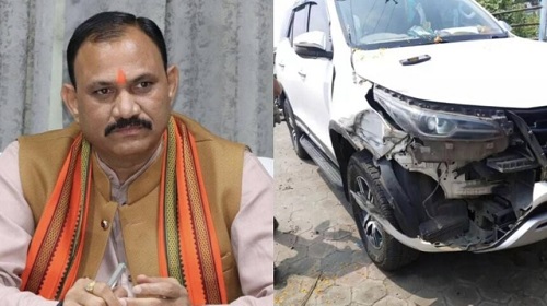 • ट्रक से जा भिड़ी स्वास्थ्य मंत्री श्याम बिहारी जायसवाल की कार