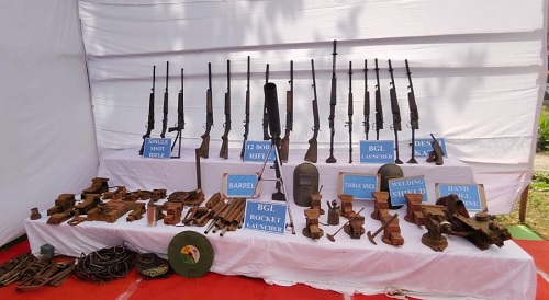फैक्ट्री से जब्त किए गए हथियारों और उपकरणों की विस्तृत सूची में BGL रॉकेट लॉन्चर (1 नग), BGL लॉन्चर (6 नग), 12 बोर राइफल (6 नग), सिंगल शॉट राइफल (3 नग), देशी कट्टा (1 नग) और BGL बैरल (3 नग) शामिल हैं। इसके अलावा नक्सलियों द्वारा हथियार निर्माण में प्रयुक्त कई गन पार्ट्स और भारी उपकरण भी बरामद हुए हैं, जिनमें ग्राइंडर, वेल्डिंग शील्ड, हैंड ड्रिल (बड़ी व छोटी), टेबल वाइस, बैरल पार्ट्स, बिजली के तार, लोहे के पाइप इत्यादि प्रमुख हैं।