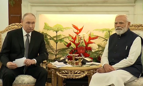 पीएम मोदी के बाद रूस के राष्ट्रपति व्लादिमीर पुतिन ने कहा कि रूस भी शांति का पक्षधर है। भारत भी हमेशा से शांति का पक्षधर रहा है। उन्होंने यह भी कहा कि मेरा पीएम मोदी से खास लगाव है। पुतिन और मोदी के बीच शुक्रवार दोपहर हैदराबाद हाउस में मीटिंग शूरू हो गई है। दोनों नेता कुछ देर में 23वीं भारत-रूस समिट में शामिल होंगे। भारत-रूस के बीच शुक्रवार को 25 से ज्यादा समझौतों पर मुहर लग सकती है।