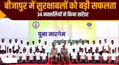 • पूना मारगेम’ से शांति की ओर मजबूती से बढ़ते कदम: बीजापुर में 34 माओवादी कैडरों ने किया आत्मसमर्पण