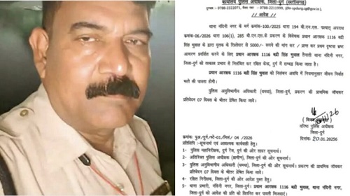 दुर्ग। CG NEWS : जिले में पुलिस विभाग की सख्त कार्रवाई का एक अहम उदाहरण सामने आया है। नंदिनी थाना में पदस्थ प्रधान आरक्षक बद्री सिंह भुवाल (क्रमांक 1116) को मृतक के परिजनों से पैसे मांगने के गंभीर आरोप में निलंबित कर दिया गया है। यह कार्रवाई दुर्ग एसएसपी विजय अग्रवाल द्वारा की गई है। जांच में आरोप सही पाए जाने के बाद मंगलवार, 20 जनवरी को निलंबन का आदेश जारी किया गया। इस कार्रवाई के बाद दुर्ग पुलिस महकमे में हड़कंप मच गया है।