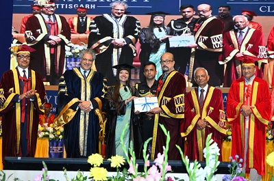 रायपुर: राज्यपाल श्री रमेन डेका ने कहा कि शिक्षा का मूल उद्देश्य केवल आजीविका प्राप्त करना नहीं बल्कि  ज्ञान और बुद्धिमत्ता प्राप्त कर पूरे समाज का विकास होना चाहिए। उन्होंने कहा कि परिवर्तन जीवन का नियम है और शिक्षा हमारे जीवन में कई तरह के सकारात्मक बदलाव लेकर आती है। अगर हम अपनी शिक्षा के माध्यम से समाज में पीछे छूट रहे लोगों का जीवन सुधार पायें उनकी ज़िंदगी बेहतर बना पायें तो हमारा जीवन सफल होगा और इस अनमोल मनुष्य जीवन का सदुपयोग कर पाएंगे।  दीक्षांत समारोह में 816 स्नातक, परास्नातक और डॉक्टरेट विद्यार्थियों को उपाधियाँ और पदक प्रदान किए गए। शेल इंडिया की अध्यक्ष और शेल लुब्रिकेंट्स एशिया पैसिफिक की वरिष्ठ उपाध्यक्ष मंसी मदन त्रिपाठी को विश्वविद्यालय द्वारा मानद डॉक्टर ऑफ फिलोसोफी (ऑनोरिस काउसा) से सम्मानित किया गया।