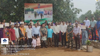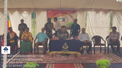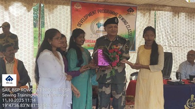 भिलाई इस्पात संयंत्र की रावघाट परियोजना के तत्वावधान में तथा बीएसएफ 86 बटालियन के सहयोग से संचालित सिलाई प्रशिक्षण कार्यक्रम का समापन समारोह 11 अक्टूबर 2025 को आयोजित किया गया। इस कार्यक्रम के तहत 09 सितंबर 2025 से 08 अक्टूबर 2025 (एक माह) तक 20 बालिकाओं एवं महिलाओं को प्रशिक्षित किया गया। प्रशिक्षण अवधि के दौरान प्रतिभागियों को कपड़े सिलाई, स्टिचिंग, बुनाई तकनीक और बुनियादी डिजाइनिंग का प्रशिक्षण दिया गया।