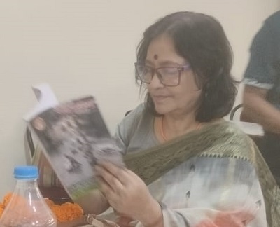 👉 • ‘मध्यबलय’-60 का अवलोकन करती हुई ‘बंगीय साहित्य संस्था’ की अध्यक्ष श्रीमती बानी चक्रवर्ती