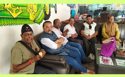 👉 • प्रगतिशील जन-विचारधारा की साहित्यिक संस्था ‘आरंभ’ के आरंभिक सदस्य ‘साहित्यकुंभ दल्लीराजहरा’ में रवाना होने के पूर्व ‘आरंभ’ के मुख्य संरक्षक कैलाश जैन बरमेचा के ‘कमला मोटर्स’ ऑफिस में चाय की चुस्की लेते हुए [बाएँ से] आलोक कुमार चंदा, ब्रजेश मल्लिक, सुरेश कुमार बंछोर, एक अतिथि, इस्माइल आजाद और एनएल मौर्य ‘प्रीतम’